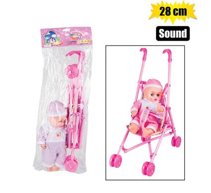 Baby doll 28cm w/sound & stroller