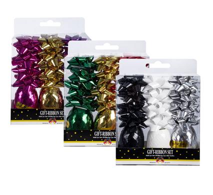Gift-decor ribbon 3rolls 10m+12bows 5cm